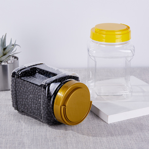 โหลพลาสติกเกรดอาหาร900มล. พร้อมฝาปิดกระป๋องสี่เหลี่ยมสำหรับใช้ทุกวันสำหรับเก็บถั่วผักดองชาน้ำผึ้ง